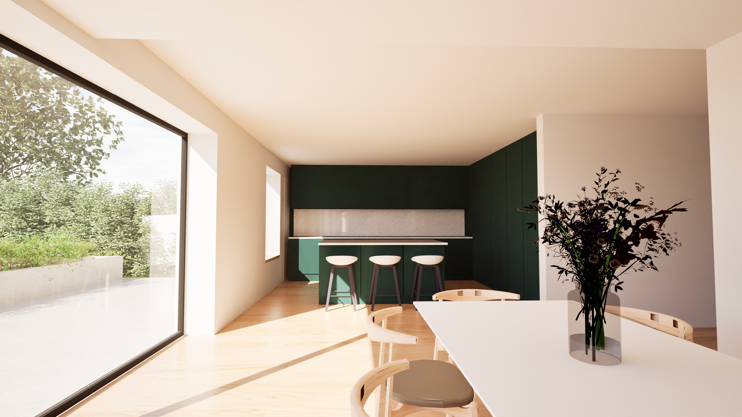 The new first floor will significantly improve the bedroom spaces, offering more generous proportions and enhanced amenities for the family. The dormer extension and redesigned roofscape will transform the appearance of the house, introducing a stronger architectural character and a cohesive, contemporary identity.