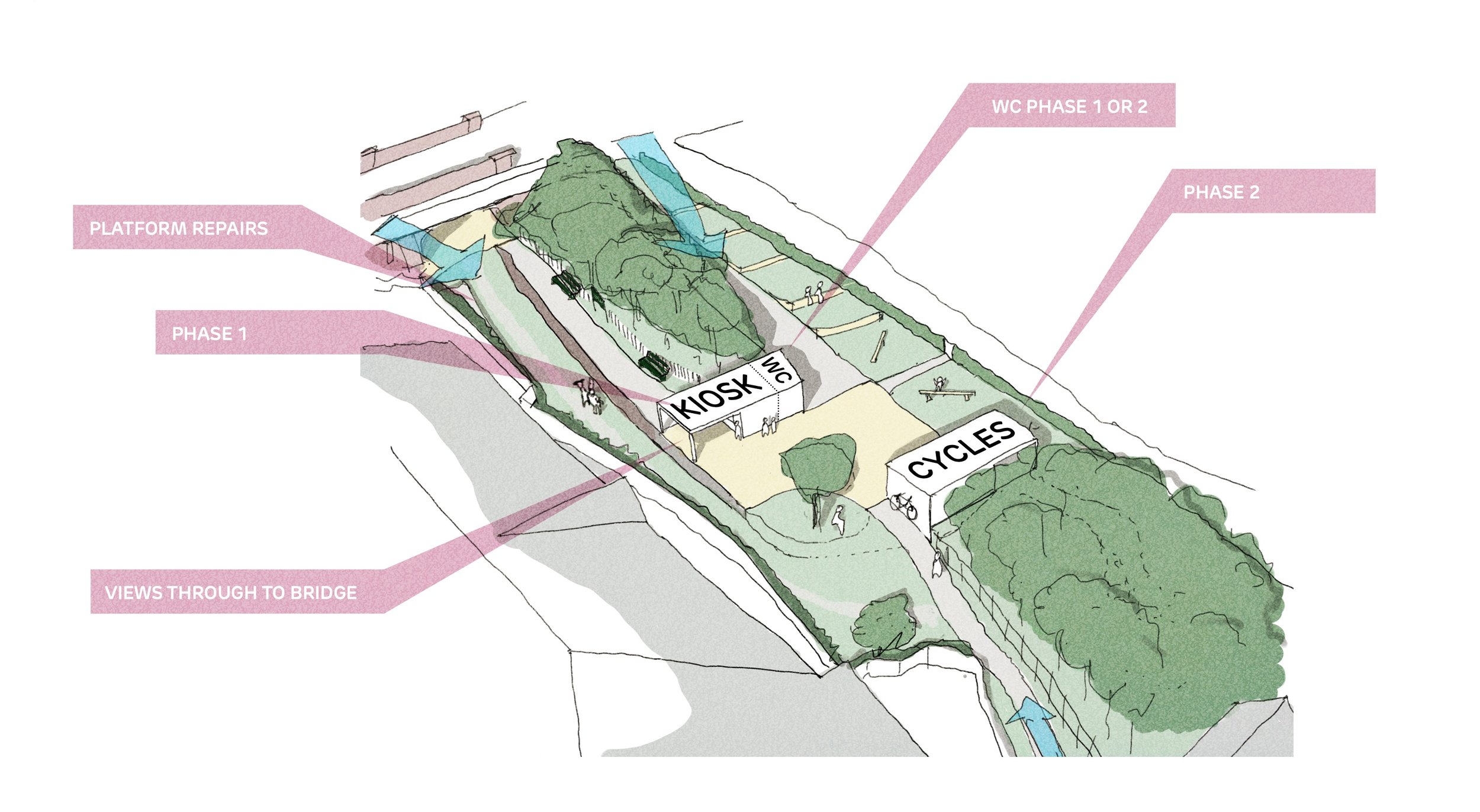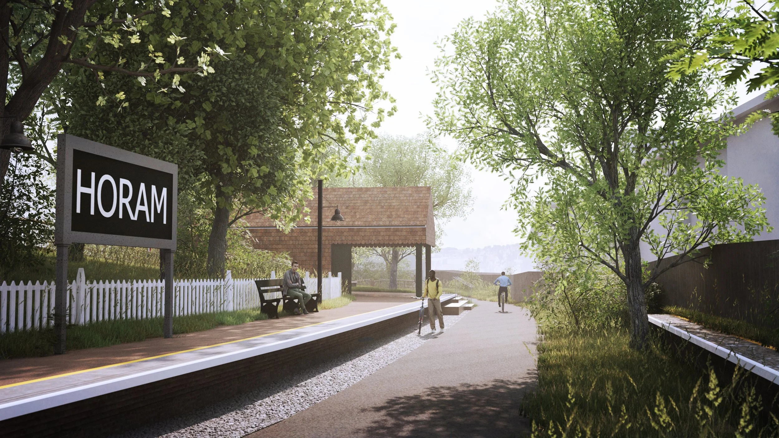 We were asked to partner with Allen Scott Landscape Architects to produce design ideas for amenity kiosks along The Cuckoo Trail, an 11-mile stretch of former railway line between Polegate and Heathfield. A site in Horam where the original train station stood, was identified for the first phase of works.
