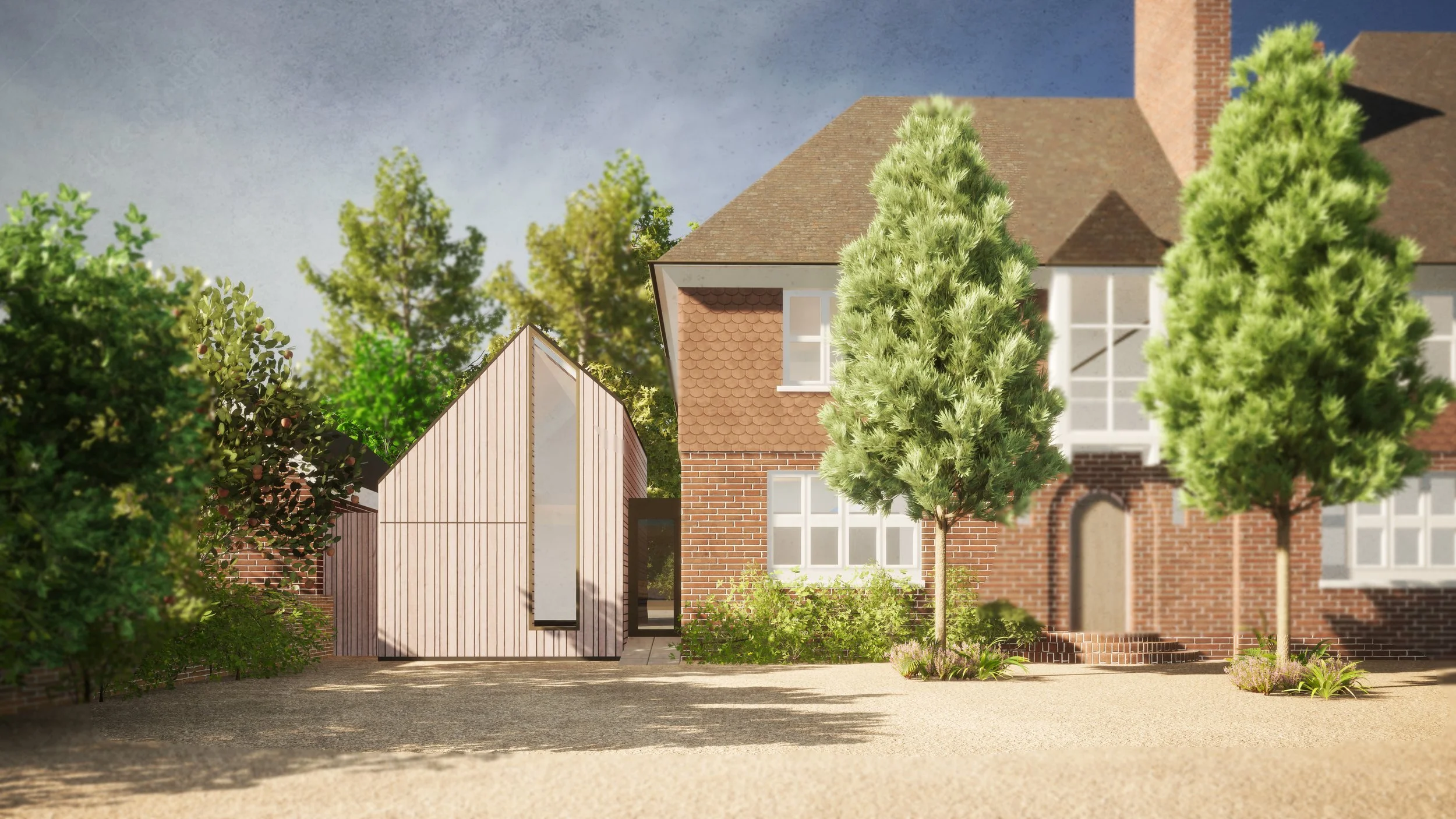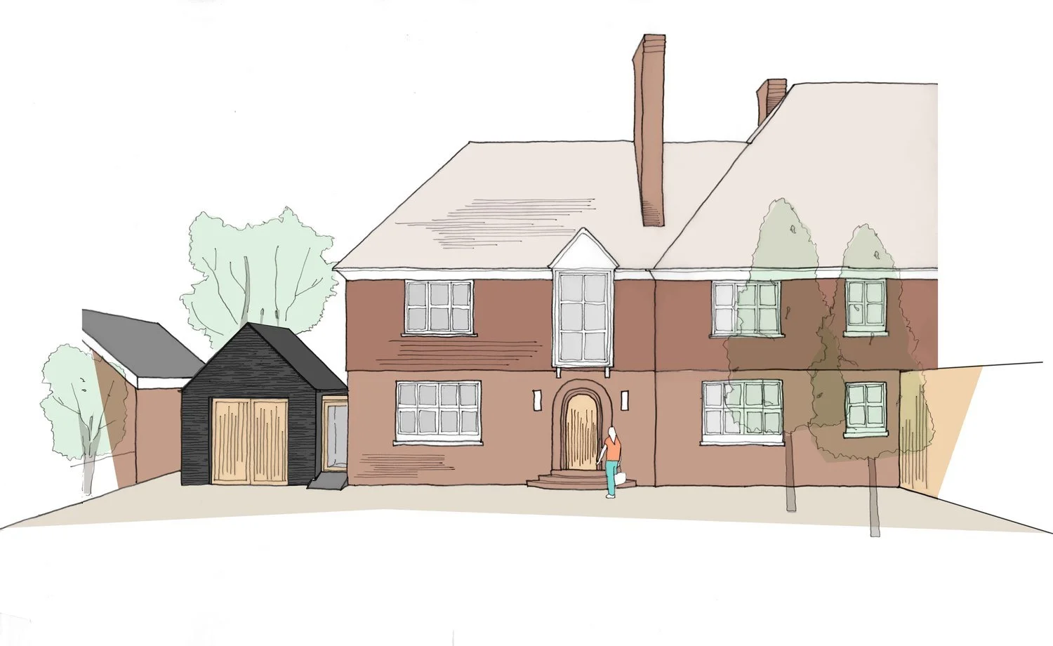 The clients required a functional workshop to support the upkeep of their property. The existing garage lacked architectural quality and did not relate convincingly to the character of the main house. The clients also wished to incorporate a roof form capable of accommodating photovoltaic panels as part of a wider commitment to energy efficiency. The brief called for a modest but carefully considered contemporary outbuilding that improved both practical efficiency and visual coherence.