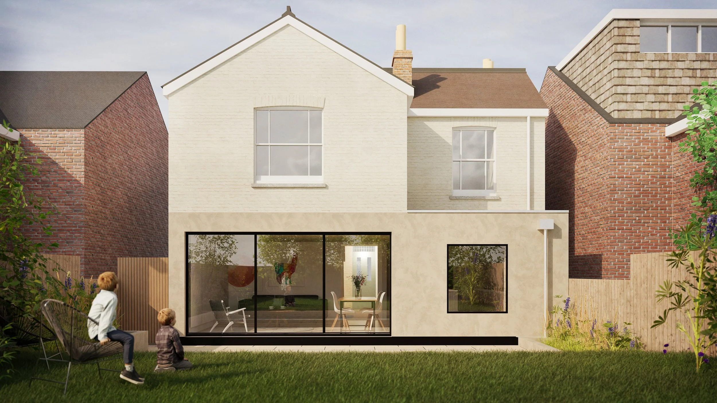 We explored several options in the feasibility stage ranging from a large rear extension to a simple kitchen/diner knock-through. In the end the clients liked the idea of extending on the footprint of the conservatory and opening up the space into a large family room, housing a kitchen, dining and social space.