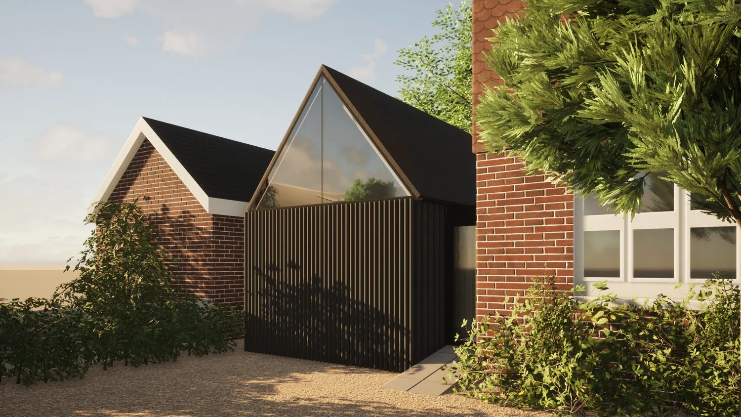 We presented a number of options to the clients, including an option to retain the shell of the existing 1980s garage and add-on/over-clad. We also looked at various materials that contrasted and matched the existing house.